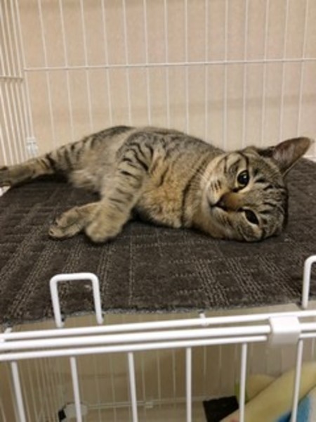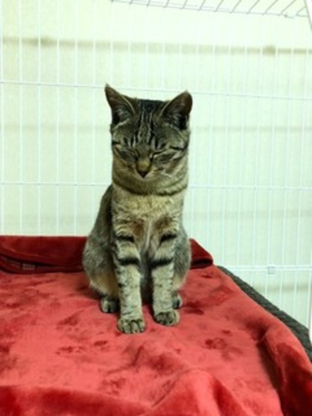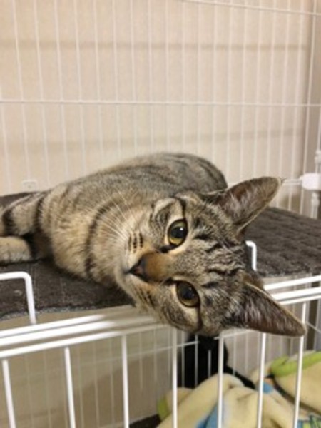 | 特徴(性格など) | かわいいキジトラの女の子です。慣れてきて、甘えん坊になってきました。性格のよい丸顔の女の子です。ぜひ、この女の子に会いにきてください。 | ||