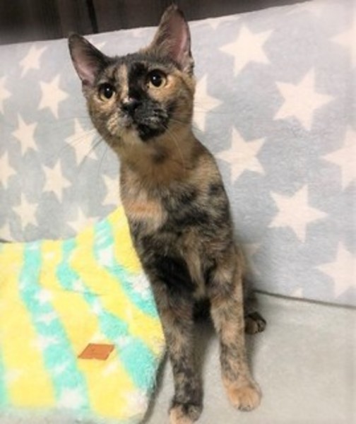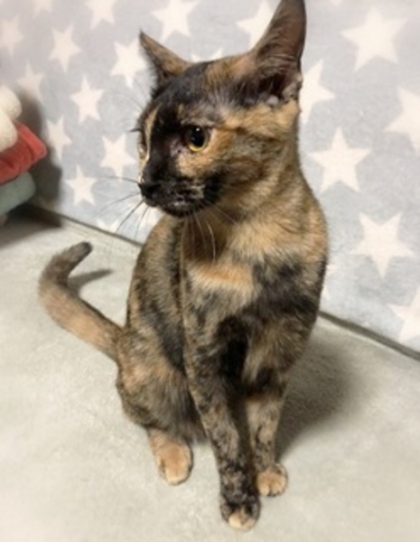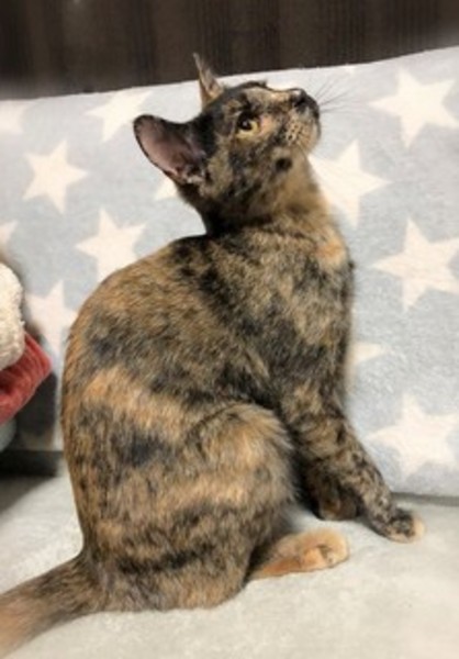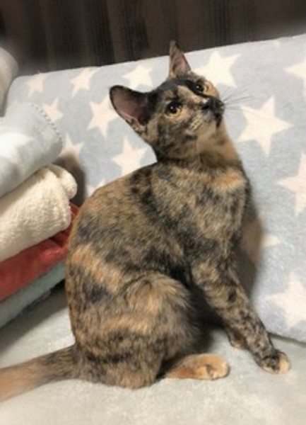 | 特徴(性格など) | 仮名、くりす。 ぱっちり瞳、サビ柄女の子。 反射神経が良く、好奇心旺盛。 とても認識力が高いお利口さん。よく色んな物を観察しています。 抱っこはあまり好きではありませんが、撫でられるとコテンと横になり、ゴロゴロ言いながら目を細め幸せそうなお顔を見せてくれます。 |
