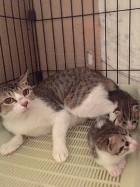 | 里親募集する理由 | 都内のTNRM(外猫を確保して、不妊手術を施し、元の場所に戻し、 餌場の管理をする)現場で母猫を確保して不妊手術後リリース予定でしたが、 出産が近く手術が出来ませんでした。預かり宅で仔猫2匹を産み子育てを してくれました。 |