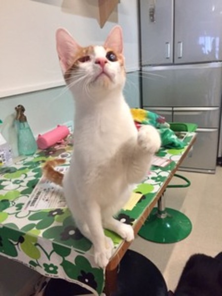 | 特徴(性格など) | 仮名 ラブちゃん 真っ白に茶トラ模様が小さな顔を縁取って、華やかで明るい印象の女の子です。丸い大きな瞳はひとつしかないけどクリクリと表情豊かです。 気ままにお膝に乗って来てはぐっすりと眠ります。マイペースでおちゃめな性格、遊ぶのが大好き。ねこじゃらしを動かすと大興奮、喜んでいつまでも遊びます。運動神経がバツグンで、しなやかに美しく遊んでいます。ラブちゃんのご機嫌をとるには、一緒に遊ぶことが一番です。 無理強いをせずラブちゃんのペースに合わせてくれる飼い主さんならよい関係が結べると思います。猫同士も仲良くできる子で、複数飼いもOKです。 ◆健康状態 子猫の時風邪のケアができなかったので片目に障害が残っています。 それ以外はすこぶる健康です。 ワクチン済 エイズ白血病陰性 避妊手術済み ノミダニ駆除 トイレ失敗なし |