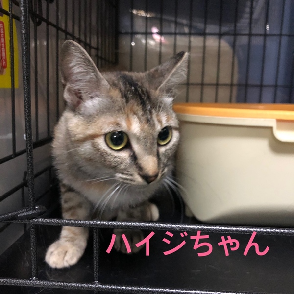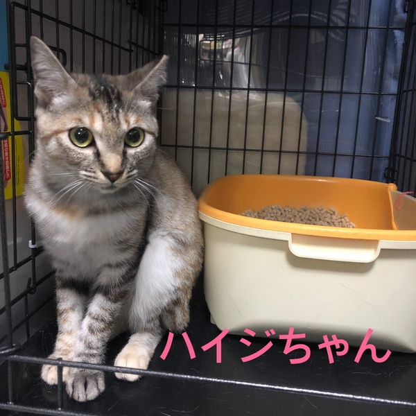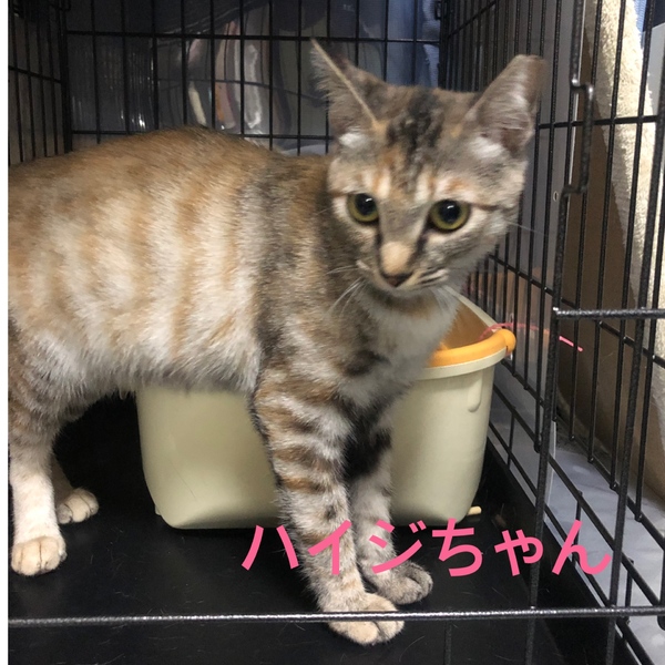 | 特徴(性格など) | 仮名「ハイジちゃん」 ワクチン済み、ブロードライン済み、ウイルス検査白血病、エイズ共に陰性 白にグレーと茶の縞のちょっと変わった柄の三毛の女の子 ウーシャー言いますが攻撃性は全くないので抱っこは出来ます。 馴れてしまえばマイペースながらいいパートナーになれる子だと思います。 まだ人馴れの訓練は必要なので飼育経験があるご家庭を希望します。 他の猫と争う事はないので先住さんがいるお宅でも大丈夫です。 |