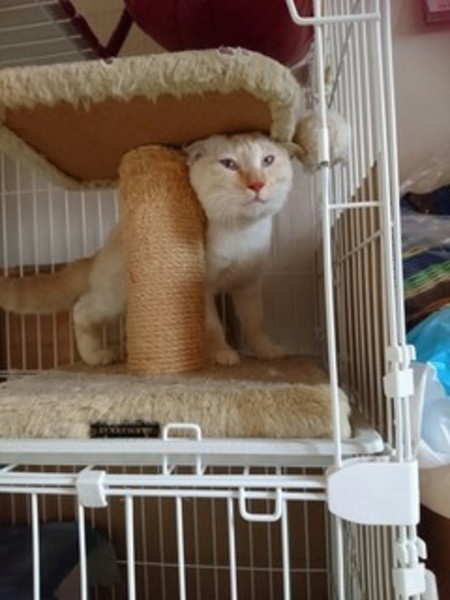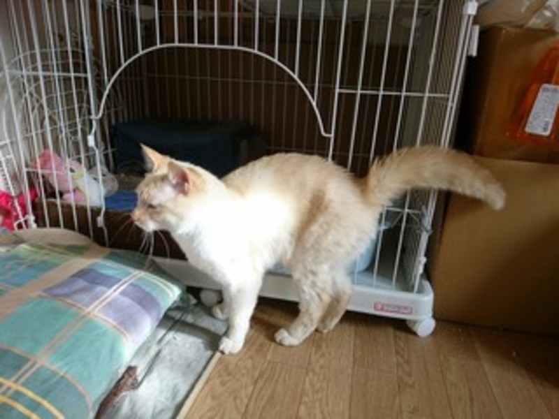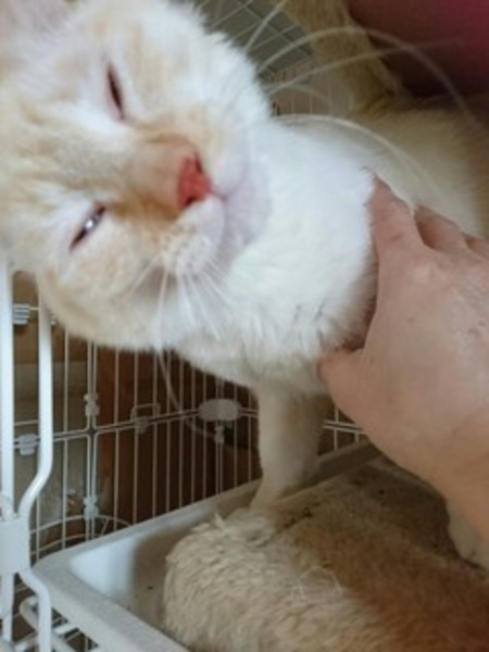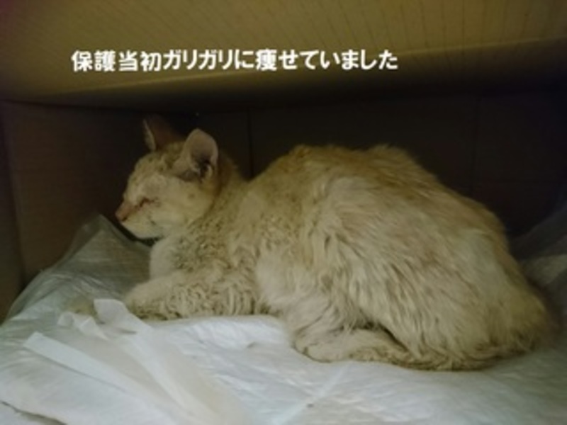 | 里親募集する理由 | 昨年10月に行き倒れの瀕死の猫を保護しました。 近所の女子中学生が下校途中にこの子を見つけて連絡をくれました。 「遊歩道に猫が倒れていて動けなくなっている!!」と。 急いで見に行くと、猫は地面に平に敷かれたダンボールの上に置かれて横になったまま、もがいていました。起き上がることができず、白っぽい毛は汚れていて、おまけに足に怪我をしていてハエがたかってウジがわいている酷い状態でした。 かわいそうだけど、この子はもうだめかな…と思いつつ持ってい行ったフードを口元に持っていくと、なんと必死に食べようとするのです。この子は生きようとしている!保護してすぐに動物病院に連れて行きました。 この子の酷い状態に獣医さんも驚いていました。助かるかわからないまでも、ケガの治療、ウジ虫の駆除と、極度の脱水だったので、点滴注射をしてくれました。 家に連れ帰って少しすると、自分でフードを食べれるまでになりましたが、足はフラフラで立ち上がろうとしても転んでばかりでした。トイレはほぼ垂れ流し状態です…。 しばらく毎日通院して点滴注射を受けて時間をかけて少しづつ回復してくれました。 はじめは年老いて衰弱した野良猫だと思っていましたが、獣医さんが診た推定年齢は2歳くらいでした。保護したとき体重が2.1kgしかありませんでした。(4、5ヶ月の子猫の体重です)そして、保護した時から全く威嚇や人を怖がる様子が無く、野良猫には思えません。発見場所は地域猫がいる餌場で、餌やりさんの話だと、全く見たことが無い猫で、動けないから自分で移動したとは思えない。誰かがダンボールを敷いてその上に置いて行ったのだろうと。 つまり、この子はどこかで飼われていて、食事もまともに与えてもらえず不衛生な状態で飼育され、弱ってしまい人の手で外に捨てられていたのだということです。 なんて酷い事する人間がいるのでしょう。 |