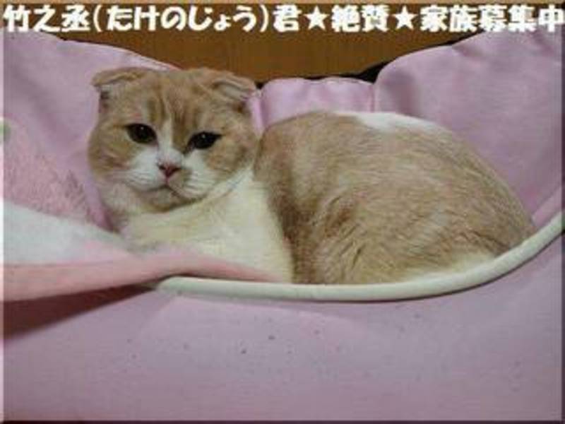 | 特徴(性格など) | スコティッシュフォールドショートヘア 名前は、竹之丞くん 体重 3.3㎏ ワクチン 接種済み レボリューション 済み 去勢手術 済み 性格 穏やかで大人しいです。 他の猫とも仲良く出来ます。 |