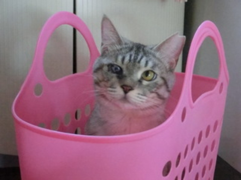 | 里親募集する理由 | 高齢者の方が、飼うでもなく飼わないでもなく餌だけやっていた猫が、押し入れで産んでしまった子猫5匹のうちの1匹です。母猫は避妊手術をして元に返しました。モモちゃんの兄妹はみんな飼い主が決まりましたが、モモは風邪ひきのケアをきちんとしてもらえなかったため、片目に曇りが残り涙目になりやすく、それが原因で中々ご縁がありません。 | ||