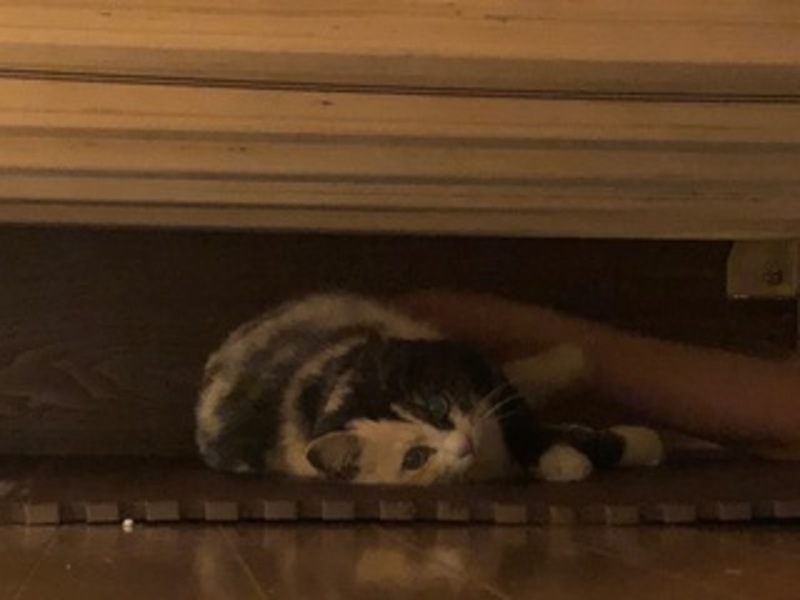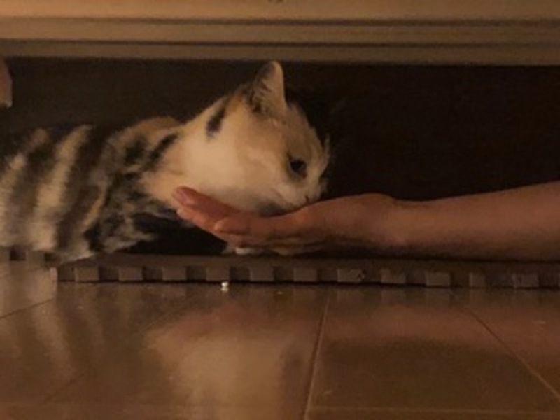 | 里親募集する理由 | 保護して一か月半が経ちましたが、まだほとんど隠れているような状況です。暑い日も寒い日も外で暮らし、家族を知らない生活でしたから仕方がないのかもしれません。でも、私が不在の時は、キャットタワーに登ったり、歩き回ったりしている痕跡があります。少しずつではありますが、ご飯を手から食べてくれたり、撫でているときに、私の手を舐めてくれたり、お腹を見せたりしますので、家猫として心から安心して暮らせるようになるのも、そう遠くないと踏んでいます。少し時間がかかっても、長い目で見てくださる方、愛情をもって接してくださる方、完全室内飼いをしていただける方に託せたらと思っています。 | ||