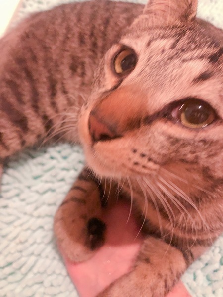 | 特徴(性格など) | トラ?ちゃんの性格は、とにかくこれまでに見たことがないほどの甘えん坊です。自分アピールもすごいです? <甘えエピソード> こちらに向かって走ってきてジャンプして抱っこをせがむような性格で、抱っこを下ろそうとしてもしがみついて離れません。寝る時も自分が一番がいいので、他の子より一番近くに来て、腕枕をしながら顔にぴったりくっついて寝ます。他の子を撫でていると、その間に入り込みます 笑? <遊びエピソード> ボールや気に入ったおもちゃがあるとずっとそれで遊びます。投げると追いかけて取りに行き、それを持ってきて足元にポンと置きます。”投げて”のサインです? <その他> 男の子だからか兄弟の中でも身体が一番大きく、顔つきもたくましいです。でも性格や鳴き声は、こちらの力が抜けてしまうほど甘々で、そのギャップがたまりません? 一度、シリコン性のキッチン用品に興味を持ち、噛み噛みしていたので、その点は注意して環境整備をお願い致します。 こんなに可愛いトラ?ちゃんと家族になってくれる方をお待ちしています? |