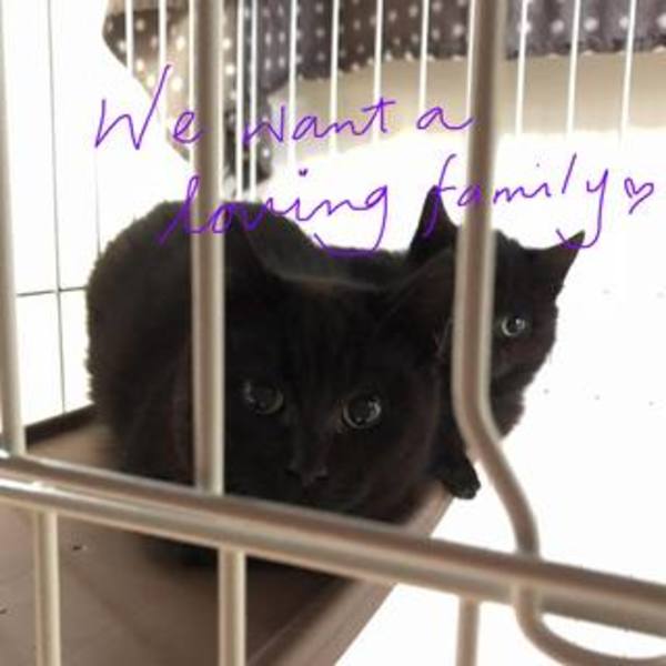 | 特徴(性格など) | 仮名)くく(男の子)、ろろ(女の子) 黒猫兄弟です。子猫悪魔期の真っ最中でいたずらざかりですが、何をするにしても2匹で一緒に行動しています。 くくは、やっは〜な性格、ろろは慎重派です。 でも、運動神経が良いのはろろ、くくはややニブめ。 冷蔵庫の上に乗っても、ろろは上手に降りてきますが、くくは「助けて〜」と鳴いています・・・(^▽^;) 現在は、先住猫さんとわんこのいる預かりさん宅にいます。 【2018年7月生まれ・ノミダニ駆除・駆虫・ワクチン1回・避妊/去勢手術済み・エイズ、白血病陰性】 |