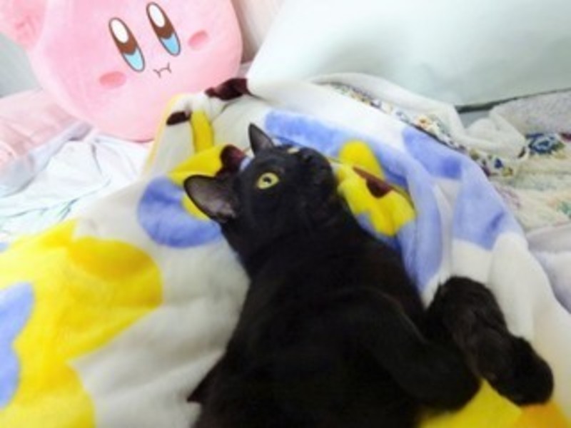 | 特徴(性格など) | 仮名、クロミちゃんという女の子です。 避妊手術、3種ワクチン、駆虫、シャンプー、爪切り、トイレの躾が済んでいます。 パルボ、エイズ、白血病、すべて陰性です。 快食快便。ウェットフードが大好きですがなんでも食べます。 ナチュラルチョイスシリーズを中心としたプレミアムフードが主食です。 標準体型内ですがお腹プヨプヨ、筋肉少な目 尻尾は長く、先端まで完全にまっすぐです。 反射して写真うつりが悪くなるくらいツヤツヤ輝く毛並です。 ※保護した時の猫風邪の後遺症で、若干お口が臭うため、継続的なサプリメントの投与をおすすめします。 安く種類も多いので月1500円くらいで済みますし、味もおいしいので餌に混ぜるだけで簡単に食べてくれます。 数えきれないくらい猫を保護してきましたが、トップクラスの甘えん坊レベルです。 隙あらば甘えてきて一人で相手をするのがちょっと疲れるくらいです。 あまり構えない、ずっとくっつかれると疲れるという方には向きません。 そばにいるともうずっとベタベタしてきます。足元でもくっついてます。 ベッドに座ると100%追いかけてきてくっついた状態でコネコネコ始めます。 寝るときも一緒にきます。中に入れると大喜びします。 抱っこはもちろん、キスしたり顔をさわられるのも大好きです。 繊細で傷つきやすいです。うっかり足をぶつけてしまったり尻尾を踏んでしまうと、ショックで逃げ回って抱っこして可愛がるまで復活しません。 人間が普段いない部屋に移すとショックで隠れて出てこなくなります。 初対面の人にも数時間〜一日でなつきますが、環境の変化に弱くお部屋が変わると隠れてしまうため、最初の数日はケージか個室で様子を見たほうがいいです。 猫見知りはほぼしないです。色んな猫に自分から愛想よくゴロゴロしにいきます。 運動量は平均的。一緒に遊ぶ友達がいれば走り回りますが、一匹だとオモチャ転がす程度で運動量が落ちます。 画像にいる白黒のハッチと仲が良いです。 子猫に対してとても愛情深くなめて抱きしめて、一緒に遊びます。 遊び相手がいて、留守時間の少ない、家族形態の環境を希望しております。 |