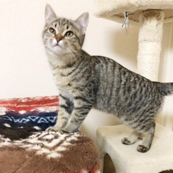 | 特徴(性格など) | かわいいキジトラの女の子です。少し怖がっていますが、慣れてきて、なでるとぐるぐる言います。 かわいいキジトラちゃんに、ぜひ、会いにきてください。 |