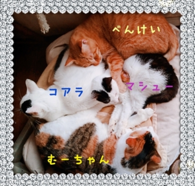 | 特徴(性格など) | 犬とも猫とも仲良しです おデブなかわいい女の子 犬と一緒に玄関まで出迎えたりします 犬派なねこです 小さいときに猫風邪がひどく、治療しましたが慢性的になってます。 目がしょぼしょぼしたり、鼻水がひどいときだけ、抗生剤をらのませたり、目薬を指しています エイズ白血病陰性、避妊済み、ワクチン、検便➖ フロントライン済み |
