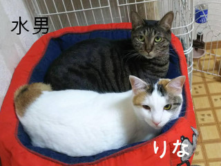 | 特徴(性格など) | 仮名を『りな』といいます。 白が多めの三毛猫です。 最初だけ人見知りがありますが、環境に慣れて安心がわかると甘々な女の仔。 愛らしい顔立ちにも関わらず、男の仔にも負けないくらい元気いっぱいで、好奇心旺盛です。 おてんばで走り回っていたかと思えば、いつの間にかウトウト。 起きていても寝ていても、とにかくおちゃめで可愛い「りな」です。 可愛い「りな」に是非会いに来てくださいね。 お見合い場所は埼玉県川口市になります。 一緒に過ごしています別番で募集中の『水男』や『ジェット』や『あお』とも仲良しですので、 お家の仔がフレンドリーでしたら、先住猫さんのいらっしゃるご家庭でも、ゆっくり見守っていただければ大丈夫だと思います。 【医療処置情報】これから実施のも含まれます *健康チェック *3種混合ワクチン接種 *ウイルス検査実施(FIV.FeLV共に陰性) *検便実施 *駆虫薬投与(レボリューション、ドロンタール) *マイクロチップ装着 *不妊・去勢手術 |