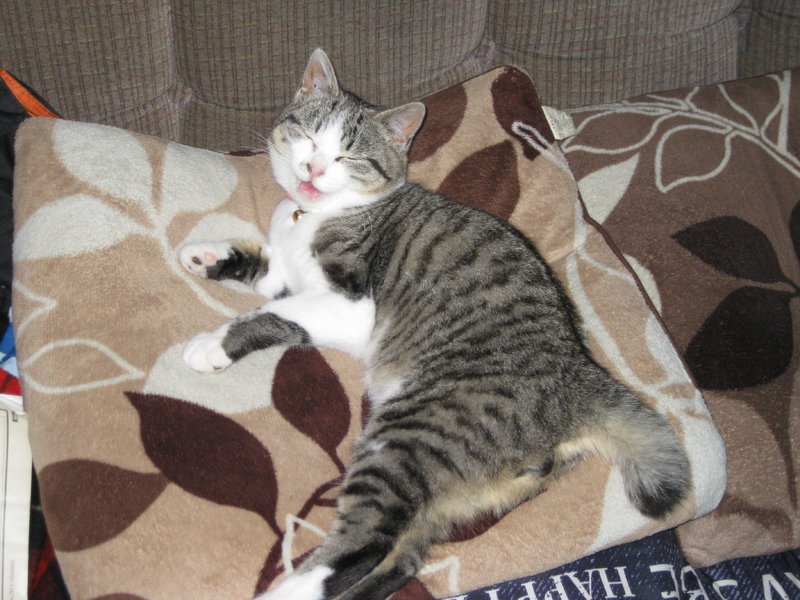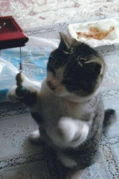 | 特徴(性格など) | オス キジ白 尾は短く、人に慣れ、布団の中に入ってきて寝ます。 写真よりもかわいいですよ。 以前、メスとして掲載していましたが、オスとわかりました。 病院の検査ではエイズや白血病、パルボ等の病気はみつかっていません。 予防接種を2回実施しています。 |