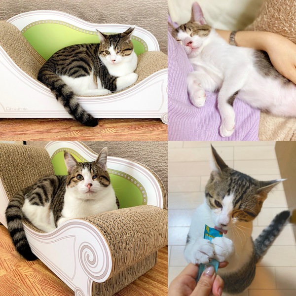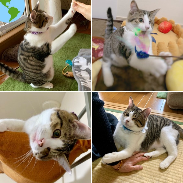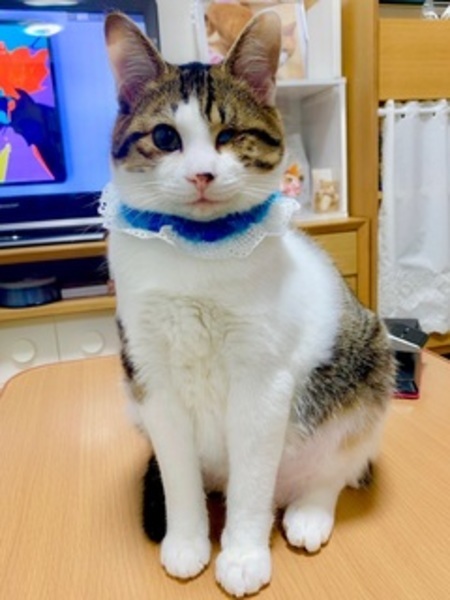 | 特徴(性格など) | 仮名:ルミエル 一番の魅力は、天使のような愛くるしい外見に、とにかく大の人間好きな性格! 下記で詳しく紹介していきます。 ☆外見☆ 大きくつぶらなお目目とウインク☆ ピンクのお口はいつでもニッコリ 優しいグレー色の縞に、粉雪のような白いフワ毛 背中の模様はお坊さんの袈裟みたい! モチモチふわふわの柔らか〜い触り心地… 天使のように愛くるしいお顔の子猫です♡ いつもニコニコ、笑顔が得意です♪ 片目でも(だからこそ?)完璧な可愛さを持つ子なのです。 天使のようなお顔に、身体の模様はお坊さんの袈裟を着ているよう、と何とも有難〜い子猫です(笑) きっと幸運を運んでくれるでしょう。 今ではもっちりぽっちゃりの体になり、被毛の柔らかさと相まってモチモチふわふわの何とも言えない触り心地。 見ているだけでも、モチふわに触っていても、傍にいても、遊んでも、常に癒される事必至です! ☆性格など☆ とっっっっても無邪気な性格! そして「とにかく大の人間好き」! 今まで人見知り、場所見知りした所を見た事がない、大変奇特な子です! 人なつこい兄弟の中でも一番の懐っこさで人がだ〜〜〜い好き! 初めて会う人にも、全然平気で物怖じせず、最初からゴロゴロ言って甘えたり、お膝に乗りに行ったり、遊んでもらえば夢中でいつまでも遊んでいます。 場所見知りもしないどころか、病院ですら楽しそうに探検。 先生の胸元にくっついたり看護婦さんにも抱きついてチューまでするほどの懐きっぷり! どの先生たちからも、「こんな懐っこい子、めったにいない!」と大変驚き、そしてニコニコされます。 この子は本当に猫でしょうか? 人見知り場所見知りどころか、通常よりテンションが上がってはしゃぎまくり、甘えまくりのルミくんです♡ ふわふわベッドや人間の着ている服にフミフミ、チュッチュしてくる甘えんぼ赤ちゃんっぷりも♪ いつまでもチュッチュしています。 キュン死しないようお気を付け下さい(笑) ルミくんは表情も仕草もすごく豊かで、見ていて全く飽きません。 先住さんの性格にもよると思いますが、他の猫の事も大好きで、物怖じせず寄っていき、いつの間にか仲良く一緒に遊んでいますので、先住さんともきっとうまくやっていけると思います。 ここからはルミくんのお目目についてお話しします。 片目を無くした事を、人間はつい可哀想に思ったり、日常生活の大変さを想像してしまうかも知れません。 現に、幸せになった他の兄妹と比べてなかなかお家を見つけてあげられず今に至っています。 しかし実際には、何匹も色んな猫を見てきた私から見ても、両目がある子と何も変わりません。 本ニャンは自分の目を全く気にしておらず、「そんなのへっちゃら!ぼく元気だよ!」とばかりに元気いっぱいに走り回っています♪ あまりに普通すぎて、というか、普通の猫以上に可愛すぎるのに目が行って、「そういえばルミくんは片目の猫ちゃんだったな」と、思い出すくらいです(笑) そのニコニコ笑顔と元気っぷりから、悲壮感はゼロ! むしろ見ているこちらをニコニコにさせてくれる子です♡ 保護主の贔屓目でしょうか? いえ、今まで会った事のある方全員が「いたって普通の猫」である事実を保証し、その可愛さと元気っぷりに夢中になってくれています♪ みなさん、「可哀想」ではなく「可愛い」の連発なのです。 一度会ってもらえればすぐに分かると思います^^ ルックスも性格も天使のようなルミくん♡ 天使をお家に迎えてみませんか^^? ☆☆☆ツイッターやブログでのこの子の日々の様子や動画を見に来てください♪☆☆☆ ツイッター http://twitter.com/chatmi6 ブログ http://chachandaisuki.blog.fc2.com/ 【健康状態】 体調はすっかり安定しており、いつも元気いっぱい! ・片目ですが、私も普段忘れているくらい(笑)、両目があるのと全く変わりませんのでご安心ください! 本ニャンも全く気にせず、思いっきり毎日走り回り楽しんで遊んでいます♪ ・猫風邪治療済み ・ノミ取り・駆虫済み ・FIV- ・FeLV- (2019年2月現在) ・3種混合ワクチン2回接種済み(2018年9月、10月) ・去勢手術済み(2018年12月) ・その他、必要な基本医療ケアは随時行っています。 (今後、追加の医療ケアが発生した場合は必ずお知らせします。) |