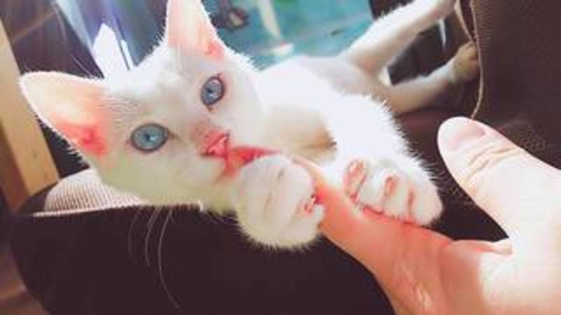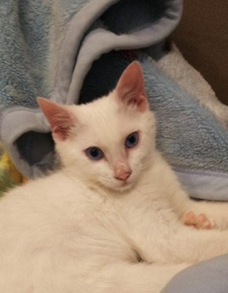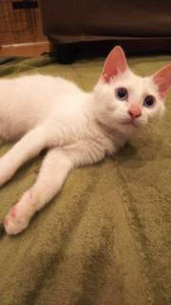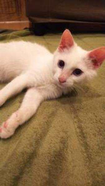 | 特徴(性格など) | 真っ白で今はブルーアイの4ヶ月の男の子です。 人にとても慣れていてお膝に乗るのが大好きです。 猫とも仲良くできます。 |
