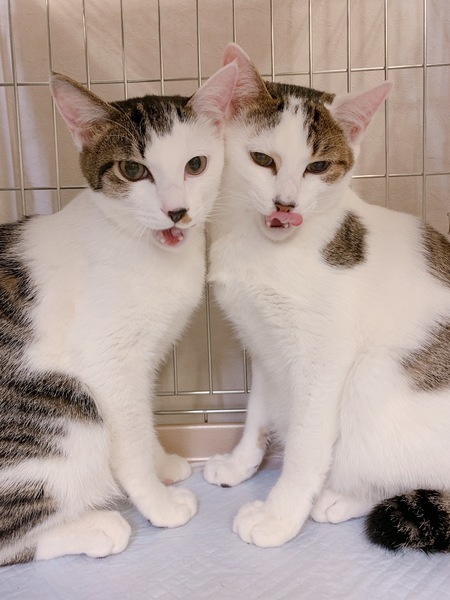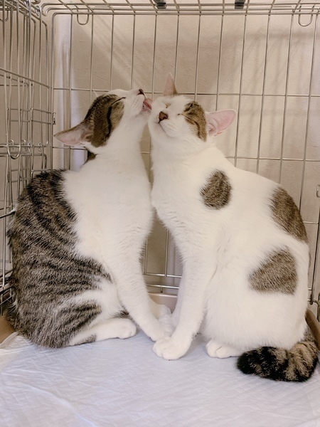 | 特徴(性格など) | ●なかもりくん 生年月日:2018年8月20日 色柄:キジ白 しっぽ:長くて先っちょくるん 魅惑の斜め前髪が素敵なオシャレ男子。 食欲満点!ちゅーるを前にすると他の子を押さえつけて食べに来ます! そっくり兄弟ですが、どちらかというとベビーフェイスなのがなかもりくんです。 ●こもりくん 生年月日:2018年8月20日 色柄:キジ白 しっぽ:ジグザグしっぽ 水玉のキジ模様が素敵なオシャレ男子。 ちょっぴり怖がりさんなところもありますが、おもちゃで遊ぶのは大好き! 兄弟の中で一番ママ似のビューティーフェイスがこもりくんです。 **** 森ママの愛情かけ流しで育ったため、ふたりともママ大好きな甘えんぼさんです。 ふたり一緒のお迎えも、森ママと一緒のお迎えも大歓迎です♪ Instagramでも、ふたりの可愛い日常を紹介しています!↓ https://www.instagram.com/nekoken2222/ ☆不妊去勢手術済 ☆ワクチン済 ☆ノミダニ取り済 ☆駆虫済 ☆マイクロチップ挿入済 ☆トイレしつけ済 ☆ウイルス検査 エイズ 陰性、白血病 陰性 |