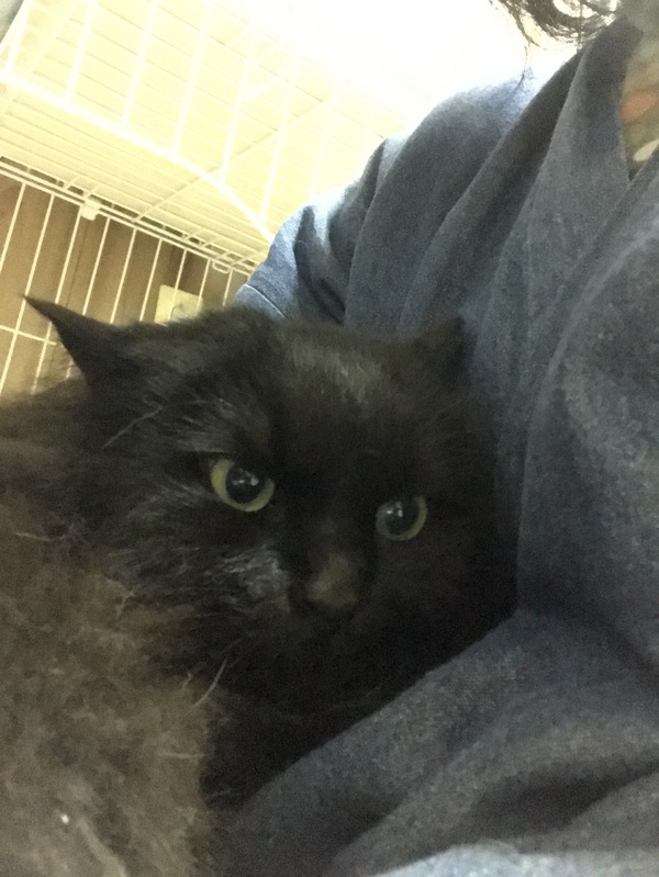 | 特徴(性格など) | 良好。 血液検査、エイズ白血病ともに陰性。 長毛で、強烈な鍵しっぽ。 非常に大人しい。 保護して、あまり日付が経ってない為猫を被ってますが、甘噛みも、とても上手で、撫でていると、たまに舐めてくれます。 保護した時、毛玉だらけで、切り落としましたが、パサパサの毛もあり、暖かくなってトリミングするか、毛が生え変わるまでは、ボサボサかもしれません。 |