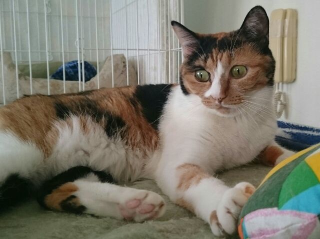 | 特徴(性格など) | ■仮の名前:ミケコ ■性格:女の子 ■年齢:推定2才('19,3月時点) ■性格:温厚。のんびり屋さん。相手がいじめっ子じゃなければ他の猫とも仲良く暮らせます。 ■健康状態:良好 ・駆虫済み ・ウィルス検査済(FIV陰性,白血病陰性) ・混合ワクチン(5種)接種済み ・不妊手術済み |