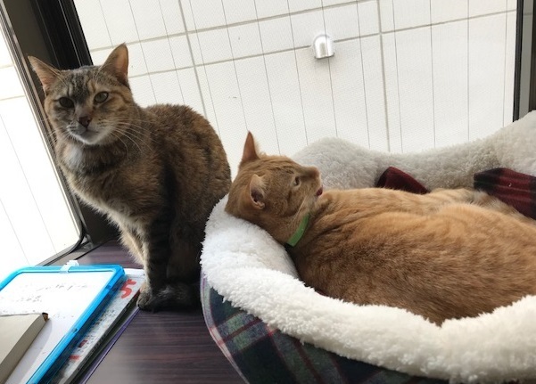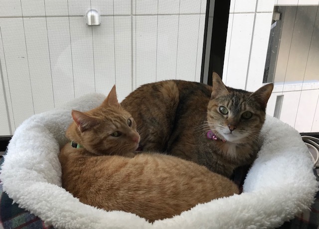 | 特徴(性格など) | とてもなかよしきょうだいです。マイケルくん(男の子茶トラ)は特に人が大好きです。 あすかちゃん(サビ系女子)は、女の子ならしく控えめな性格です。 |