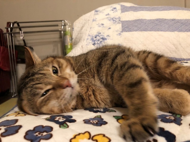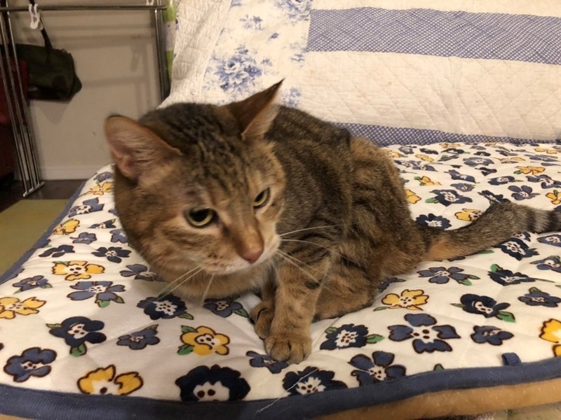 | 特徴(性格など) | 仮名:メリルちゃん メス 推定6~7歳 エイズ・白血病共に陰性 人は好きですが、しつこいのは苦手です。 床でゴロゴロ転がって遊んだり、マイペースな猫らしい子です。 口内炎が続きましたので抜歯処置済。 下半身まひがあります。 排尿排便の介助が必要です。 日に2回、腹部を押して圧迫排尿させます。 抱っこしてペットシーツを敷いて、そこに出してあげます。トイレはいりません。 もちろんやり方はレクチャーさせて頂きます。 |