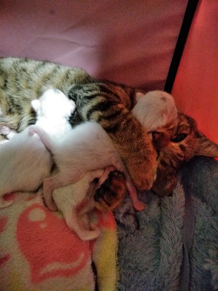 | 特徴(性格など) | ほぼ白の子猫が4匹産まれました どの子猫も、 頭にほんの少しだけグレーが入っています オスもメスもいます |