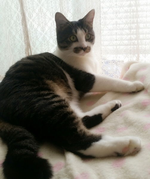 | 特徴(性格など) | 4月21日(日)ミャオ!ねこのおうち譲渡会に参加しますので、そちらに会いにいらしてください。 ◇仮名◇チュッチュ君 ◇毛色◇キジシロはちわれ ◇性別◇オス ◇性格◇ メインクーンやノルウェージャンのように優雅で大きなぬいぐるみのような猫ちゃんです。 毛色は、サバシロ風の濃い色のキジシロです。 白い部分は真っ白で、長毛風でとても綺麗です。 お口まわりにあるヒョウ柄風のワンポイントのチョビ髭がチャームポイントでとっても可愛いです♪ 尻尾は、幸運を引っ掛けて運んできてくれる鍵尻尾です! まだ、1歳半くらいですが、凄く落ち着いていてとても穏やかな性格ですが、遊びはいつでも全力で、やんちゃな男の子に豹変し大きな体で一生懸命遊んでいる姿は本当に可愛いです。 甘えたい時は、自らそっと寄り添ってきて「撫でて~♪」と、頭を差し出してきます。 添い寝をしたり、人の側にいることも大好きです。 ワンちゃんとも、どんな猫ちゃんとも仲良くできる攻撃性の全くない心の優しい男の子です。 先住猫さんのいるお家か、里親募集中のKARA君か、(祈、実ちゃん姉妹)と、一緒にお迎えして頂ければ嬉しいです。 終生、パートナーとして、家族として、大切に愛し寄り添ってあげて下さい。 |