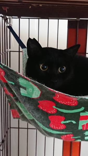 | 特徴(性格など) | 黒猫 ビビリくんですが、遊ぶのが大好き! 愛嬌があるボクちゃん。 残念ながら猫エイズ キャリアです。 |