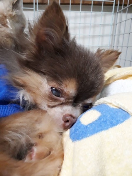| 特徴(性格など) | ■特徴(仮の名前:)ぐり♂ チワワ推定18歳 体重1.45Kg (痩せすぎ) ■性格・暮らし ・高齢らしくとても穏やかで、無駄吠えありません。 ・一日の殆どを寝て過ごしています。 ・下顎折れているため、フードはペースト状にして与えてます。 ・トイレシートの認識ありますが、未去勢のためマーキングあります ・前庭疾患があるため斜頸、旋回あります。 ※高齢の為、譲渡金(医療費一部負担金)免除 ■今までに行った医療行為 ・混合ワクチン ・検便 ・血液検査 ・フィラリア検査 陰性 ・耳ダニ検査 ■今後行う予定の医療 ・高齢の為、麻酔のリスクを考慮して去勢手術検討中 ・マイクロチップ装着 |