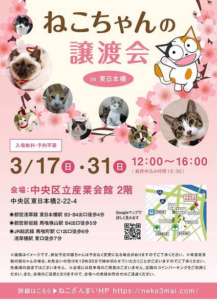 | その他(譲渡条件など) | ★仔猫ご希望の里親様★ 仔猫ちゃんたちは、まだ体がしっかりしていない赤ちゃんです。 下痢だけでも数時間対応ができなかっただけ死に至る事もあります。 その為、月齢に応じたお留守番時間を設けさせていただいております。 また、子猫ちゃん(6ヶ月未満)の里親様には子猫支援金のご協力をお願いいたしております。 ★猫ちゃんとのお見合いは譲渡会で!★ ねこざんまいの猫ちゃんは譲渡会でのお見合いのみとなります。 『この子はいつ譲渡会に参加するの?』『譲渡会場の場所はどこ?』など はねこざんまいホームページをご覧ください。 https://neko3mai.com/ ★楽しく猫ちゃんと触れ合って♪★ ねこざんまい譲渡会は、猫ちゃんも里親様も保護主も笑顔で過ごせる譲渡会を目指しています。 これから20年以上、楽しい時も、悲しい時もいつも傍にいてくれる大切な家族になる猫ちゃんです。 会場には沢山の猫ちゃんがいます。 1匹1匹、触れ合って猫ちゃんとお話ししてください。 『初めて猫ちゃんを家族に迎える方』 『先住猫ちゃんのお友達を迎える方』など トライアルの仕方や先住猫ちゃんと仲良くなるコツなど経験豊富な保護主やスタッフにお気軽にご相談ください! 猫を愛し、そして猫に愛されている猫好きスタッフと保護主がアドバイスさせていただきます。 ★里親希望のみなさまへ★ ペットではなく、家族一員としてたっぷり愛情を注いでくださるご家庭をお待ちしております。 恐れ入りますが、 ・学生の方 ・一人暮らし、同棲中の方 ・子猫、若猫希望の60歳以上のみのご家庭 ・脱走防止対策にご協力いただけない方 は原則お断りさせていただいております。 ただし、預かりボランティアさんとして新しい家族が決まるまでの間、猫ちゃんを預かっていただく道もございます。 参加猫ちゃんは、それぞれ保護主(実際に猫ちゃんを自宅に入れ、保護をしている方)が異なります。 詳しい条件なども異なる場合がございますので、会場内で直接保護主とお話ください。 〖共通条件〗 1.終生飼育 2.完全室内飼い 3.脱走防止対策へのご協力 4.避妊去勢手術 5.契約書類へのサイン 6.定期報告 7.医療費等の負担 当日の猫ちゃんを連れて帰ることはできません。後日、保護主が里親様のご自宅までお届け致します。 その為、移動の際の猫ちゃんの負担を月齢などから考慮し、お届け地区を限定させて頂くこともございますのでご了承ください。 |