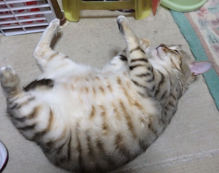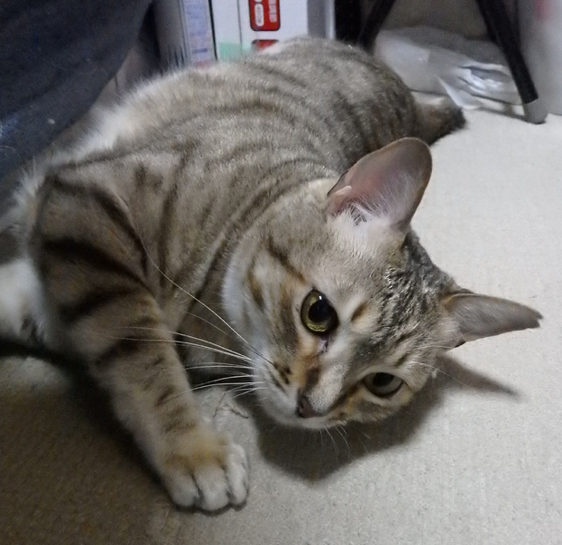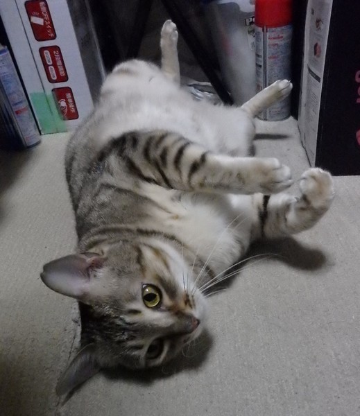 | 特徴(性格など) | 小柄ですがちょっとぽっちゃり体型、金眼キジトラのメス猫ちゃんです。 人馴れしており、人見知りしません。初対面でもお腹を見せちゃうくらいの甘えん坊で、撫でたり抱っこも可能でした。遊ぶのも大好きです。 |