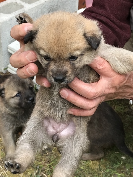 | 特徴(性格など) | 黒のメス1匹 黒のオス1匹 茶のメス5匹 茶のオス2匹 まだ、赤ちゃんですがシッポを振って来てくれるようになりました。離乳食もしっかり食べます。健康状態も良好です。とにかく、コロコロで可愛いです。 |