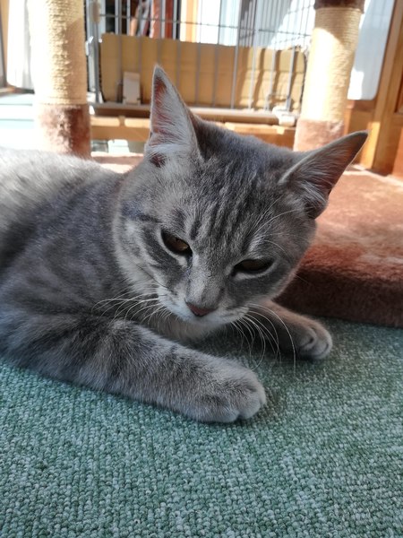 | 特徴(性格など) | ■色柄・見た目 ・しましま入りの全身灰色 ・尻尾はやや中尾。先っぽが細長い ・ちょっぴり洋猫さん風のイケメンです☆ ・そこまで大きくないですが、丸くてがっちりした体格です ■性格 ・人間大好き。撫でられるとゴロゴロ言います ・寂しがり屋でおしゃべり ・猫とも仲良く出来ます |