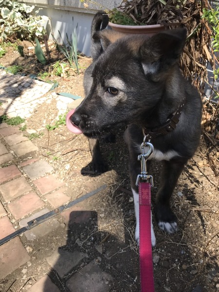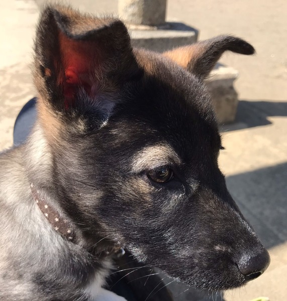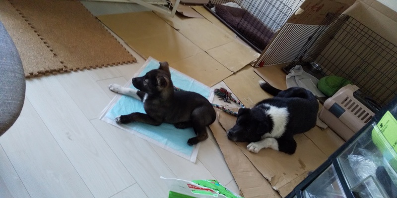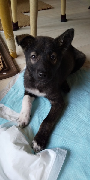 | 特徴(性格など) | 黒に片足白ソックスちゃん。目の回りが白く可愛い子です。最近赤ちゃんの毛が抜け変わってきて、耳の辺りに茶色もでてきています。 元野犬の赤ちゃんなので、はじめは人間や、物音に驚きますが、先住犬がいらっしゃると馴れるのも早そうです! |
