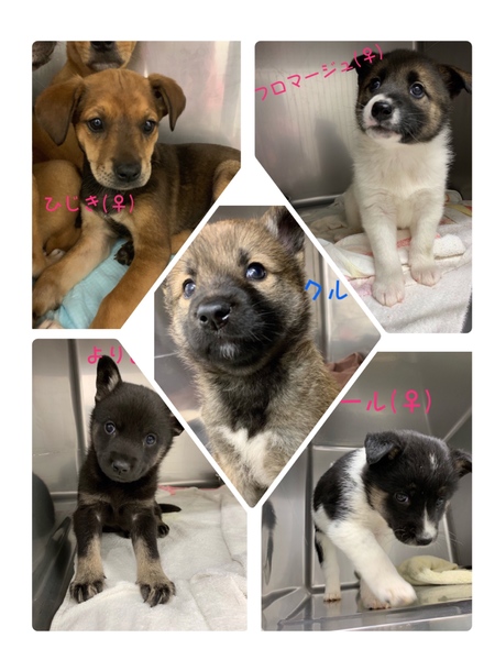 | 特徴(性格など) | まだ生後2カ月位〜生後半年位のとっても可愛い雑種の子犬達男の子5匹、女の子5匹の10匹ฅ•ﻌ•ฅ里親様を募集しております! この子達は保健所に収容され殺処分寸前だったところをレスキューされ【一般社団法人台東125小さな手】のシェルターへやってきました。 誰にでも尻尾フリフリ(^^)とっても人懐こくて愛嬌たっぷり、子犬らしさ全開!中にはまだ怖がりさんな子もいますがどの子も甘えたい盛りの幼いちびっ子達です。トイレトレーニングも一生懸命頑張っていますฅ•ﻌ•ฅ (中型〜大きめの中型犬サイズに成長すると思われます) ◆健康状態 5種混合ワクチン接種済み ノミ、ダニ駆除済み パルボウィルス陰性 条虫駆除済 糞便検査陰性 よく食べよく遊び、仲間達と元気いっぱいに過ごしています。 ◆ワクチン摂取、去勢手術の有無 5種混合ワクチン接種済み 未避妊 未去勢 |