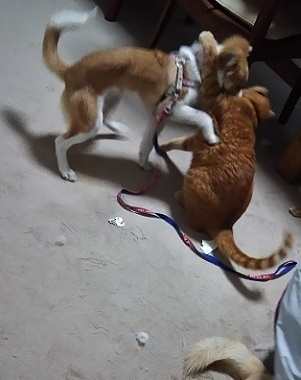 | 特徴(性格など) | ★元旦に保健所を出て高槻に来た子犬兄妹達に「笑福」「大福」「福代」というおめでたい仮名をつけました。 ●人の手が怖い兄妹達の中で 一番警戒心が強く賢く自立した子犬が「福代」ちゃんでした。 福代ちゃんは 人の手から食べ物をもらって食べるけれど、体をさわられることを怯えて、人の手が体に近づくとビュンと逃げていました。 人が好きなワンコ達と一緒に暮らすうちに、人への信頼や甘えは芽生えてきましたが、最後まで手で体をさわられることだけは抵抗していました。 リードとハーネスの付け替えを強制的に行ってみんなで楽しい散歩に行くことをくり返しながら、 触られること、抱き上げられることへの抵抗は減ってきています。 普段の様子はコチラを見てください。⇒http://inunogassyukusyo.seesaa.net/article/464429818.html ⇒https://ameblo.jp/cleopacleopa777/ ●犬との付き合いがとても上手です。 空気をよく読んで、怒りんぼ犬、優しい犬、元気に遊びたがる犬・・・相手に合わせてうまく距離も取りながら付き合っていく賢さに感心してしまいます。 ●犬だけではなく、預かり宅の猫ともよく遊びます。 ●触られるのに少し抵抗は感じるようだけど、寂しがりの甘えんぼちゃんで、いつも人のソバにくっついています。 可愛いですよ。 ●初めての場所でも、ちゃんとシートでオシッコ・ウンチします。 ●元気で健康です。 ●食欲はとても旺盛。快食・快便。 ●ノミダニ駆除薬・虫下し・フィラリア予防薬は投与済み。 |