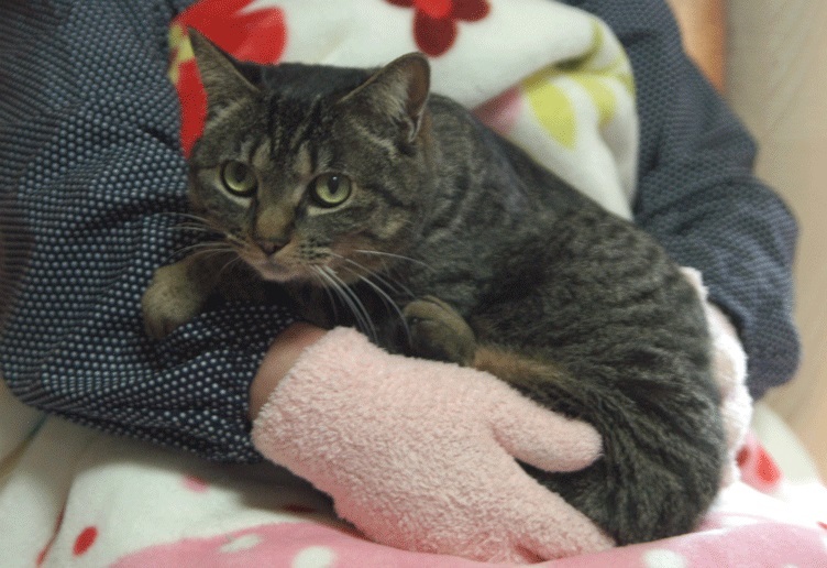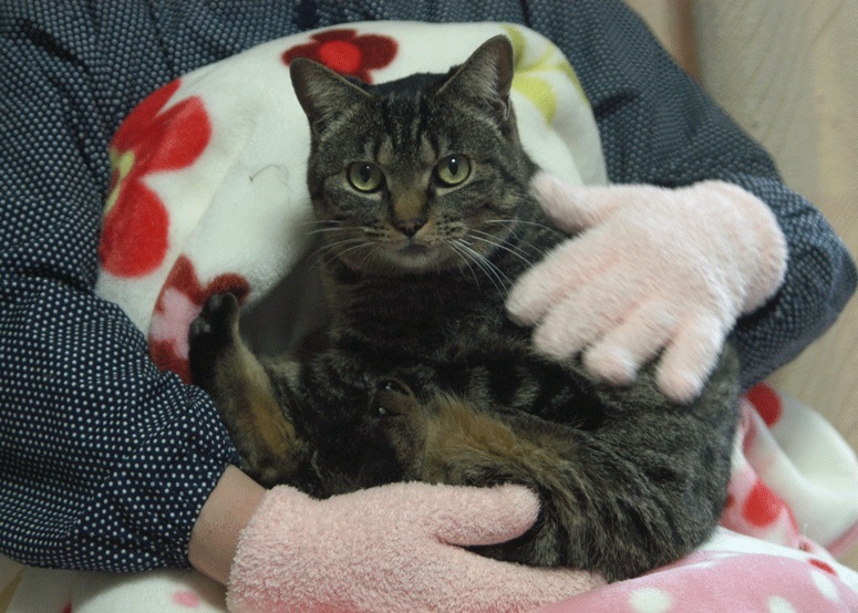 | 特徴(性格など) | 人間に慣れていて、だっこできます。大人しくてお利口さんのキジトラのメスです。 猫エイズ、白血病ともに陰性。駆虫、検便済み。 不妊手術済み。 |