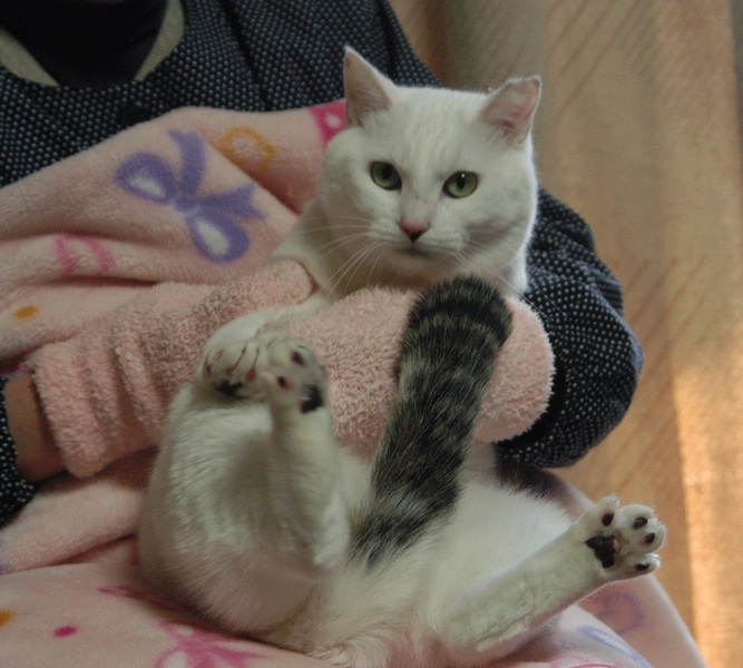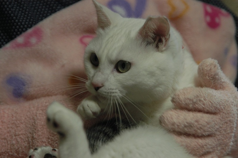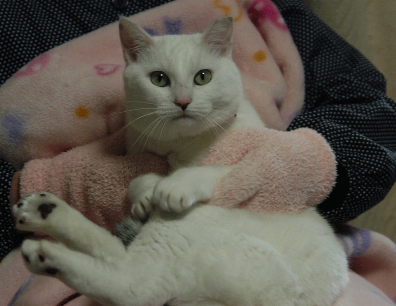 | 特徴(性格など) | 少しこわがりさんですがだっこできます。大人しくてお利口さんのシロキジのメスです。 猫エイズ、白血病ともに陰性。駆虫、検便済み。予防接種済み。 |