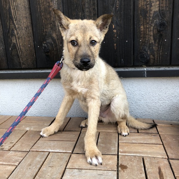 | 里親募集する理由 | 家族が、犬の散歩中に子犬が竹藪にいるのを見つけ保護しました。 我が家には既に雑種が4頭おりますので、里親を募集しております。 |