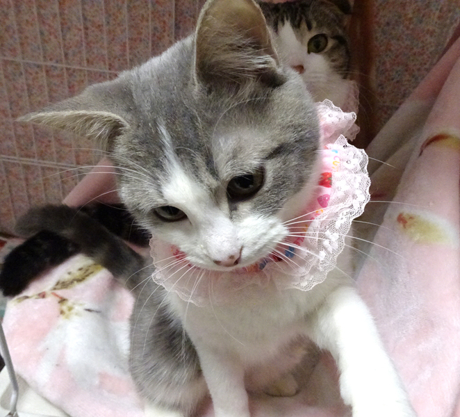 | 特徴(性格など) | 【猫の仮名】 スミレちゃん (担当 松嶋) 【毛色・柄】 グレー白、長いシッポ マリーちゃんと姉妹です。 元飼い猫のようで、おだやかで大変人なれしています♪ 猫を飼うのが初めての方でも大丈夫です♪ ●不妊手術済み ●ウイルス検査(エイズ・白血病検査) 陰性 ●ワクチン 1回 ●蚤取り 1回 ●駆虫 2回 ●検便 2回 ●シャンプー 2回 持家のお住まいで家族の一員として生涯大切にして下さるご家族を募集しています。 |