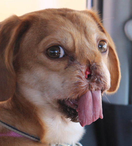 | 特徴(性格など) | MIXの『瀞(とろ)』です。 (ちばわんHP掲載番号No.3874)←申込時は必ず犬の名前とこの番号を記載してください。 【毛色】薄茶 【体重】9kg(痩せ気味) 【状態】顔面損傷(完治)、 フィラリア(-)、マイクロチップ装着済、ワクチン接種済、狂犬病予防接種済、検便(-)、ノミ・ダニ駆除済 【人馴】問題なし 【性格・その他】 胴長短足で甘えん坊の男の子です。 何かの機械にでも巻き込まれたのか、口元をわずかに残す位置で鼻、口、舌先を失うという状態で保護されました。命に係わる大怪我を負ったにも関わらず、数度に渡る手術を乗り越え、無事生き延びた強運の持ち主です。 人が大好きで、抱っこすると全身を委ね安心して眠ります。とても表情が豊かで、思っていることがすべて顔に出るユニークな子です。 お散歩や、犬・猫と遊ぶのが大好きで、とても活発です。運動能力は高く、高い所へも楽々飛び乗ることができます。 他犬とは元気良く走り回り、ドタバタ大騒ぎして遊びますが、吠えることはありません。初めての場所や知らない人や犬に対しては、慣れるまでかなり激しく吠えることがあります。 来訪者や外からの聞き覚えのない音にも反応しますが、家族だけで過ごす時間は静かで、穏やかに過ごしています。 傷はすっかり完治して特別なケアの必要もなく、ドライフードも食べられるようになりました。幸い嗅覚は失われておらず、ご飯やオヤツの匂いに大喜びして盛り盛り食べています。 トイレは室内でもお散歩でもどちらでもできます。室内ではたまに失敗してしまうこともありますが、オシッコは足を上げることもなくシートの上で上手に済ませます。 現在、健常な子となんら変わりない暮らしが送れるようになりましたが、顔面損傷は一目でわかります。そんな瀞を丸ごと受け止めてくださり、二度と事故に遭わないよう、しっかりと見守ってくださるご家族を探しています。人が大好きですので、お留守番の少ないお宅が向いていると思います。 引き続き室内飼育で、脱走・逸走に対する細心の注意と住居等の脱走防止対策、定期的なワクチン接種や狂犬病予防接種とフィラリア予防などの健康管理を必ずお約束していただける関東圏内にお住まいのご家庭で、終生家族の一員として瀞を大切にしてくださる方からのお問い合わせを心からお待ちしております。 【預かり場所】神奈川県三浦郡 【日記】「チビスケんち」(インスタグラム) https://www.instagram.com/chibisukehaha/ チビスケんちの預かり日記Ⅱ(09年6月~) http://chibisukeazukari.blog68.fc2.com/ |