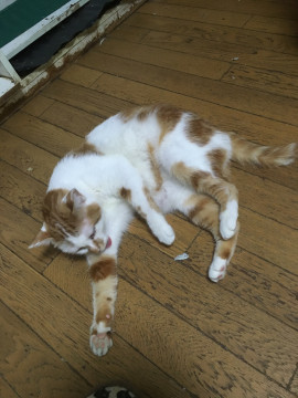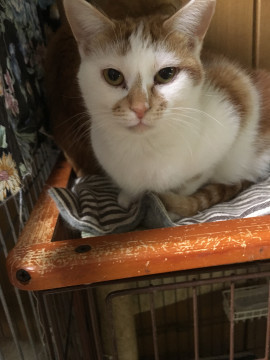 | 特徴(性格など) | 白地に茶色柄が綺麗、尾尻長く真っ直ぐです。 性格は、ゴロゴロ、スリスリではないですが人馴れしてます。 私にはお腹ゴロンしまして、撫で撫でさせてくれます。抱っこも暫くはできますが、好きでないです。初対面の方にはビビり隠れます。 猫ちゃん飼育経験豊富な方 先住猫ちゃんいる方、カカオちゃんを気長に見てくださる方宜しくお願い致します。 他の猫ちゃんとは仲良し出来ます。 トライアルあります。 |