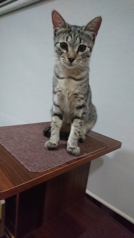 | 特徴(性格など) | 人懐っこい性格です。名前を呼ぶと返事をします。キジトラの女の子です。トイレは、システムトイレより普通のトイレを好みます。足元で一緒に寝ます。 |