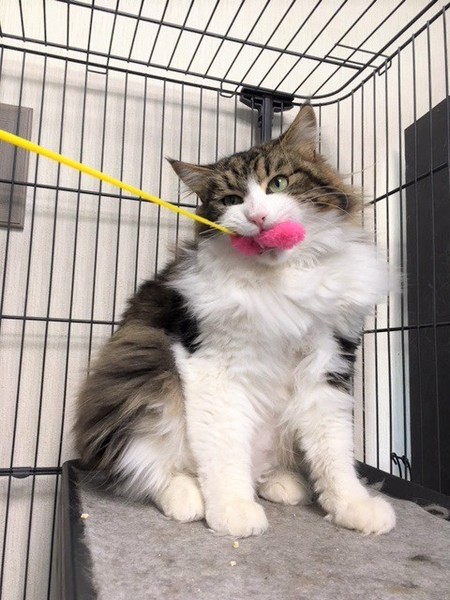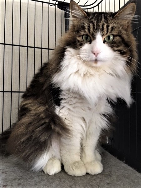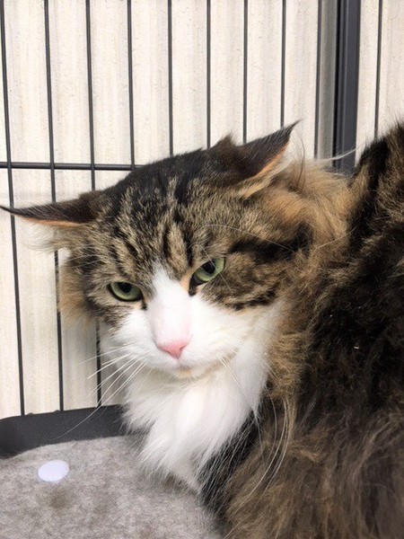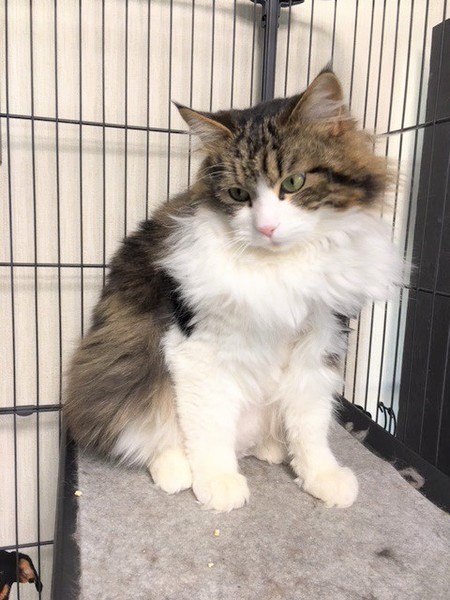 | 特徴(性格など) | 仮名:ジャンくん 毛色: 長毛、ノルウェージャンのミックス エイズ・白血病共に陰性 ワクチン・去勢手術済 検便・ノミダニ駆虫済 誰にでも友好的、寂しがり屋で撫でられるのが大好きです。 人恋しくて、大きな声で人を呼び鳴きますので、お留守番が少なく、誰かが近くに居てくれる環境が望ましいと思います。 猫より人間が好きですので、一匹飼いを希望します。 爪切り、ブラッシングさせてくれます。ブラッシング中に嬉しくてかぷっと甘噛みする事があります。 |