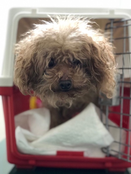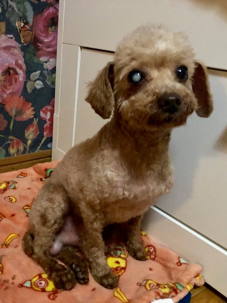 | 里親募集する理由 | トイプードルと思われるつむぐくん。 捨てられ、ウンチだらけ痣だらけの毛むくじゃらの状態で、住宅街を彷徨っていました。 蹴られて殴られて生きていた痕跡が、身体のあちこちにありましたが、それでも人間を愛してやまない男の子です。 狭いケージに閉じ込められ、繁殖犬として生き、不要になって捨てられたと思われる彼ですが、そんな劣悪な環境から飛び出しました! つむぐくんの白内障で濁った瞳は今!明るい未来をとらえてキラキラと光輝いているのです! |
