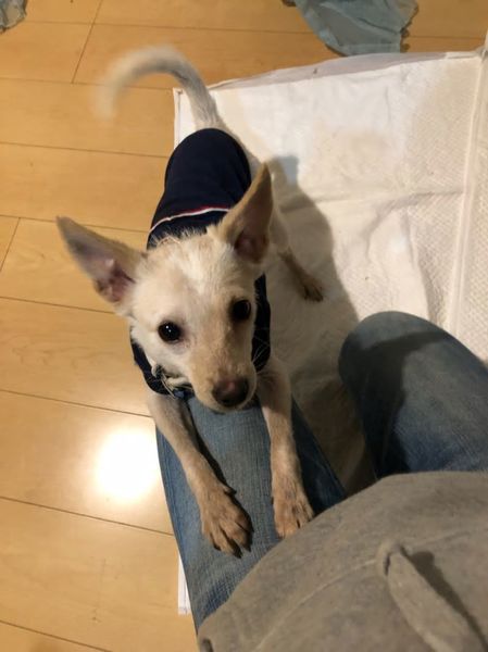 | 特徴(性格など) | ■特徴 仮の名前:ソラ ミックス 白茶 ♀ 推定1歳 体重3.8キロ ■性格・暮らし ・人間にも犬にも友好的です。 ・無駄吠えはありません。 ・人が好きな甘えん坊です。 ・お留守番は、フリーでもゲージでも大人しく出来ます。 ・トイレシートの認識はありませんでしたが、3日で覚えました。(ほぼ100%出来ます) ・体つきは華奢ですが、足腰が強く、安定感があります。 ■今までに行った医療行為 ・フィラリア抗原抗体検査(-)(4/1) ・6種類混合ワクチン(3/5) ・健康チェック(3/5,4/1) ・検便(-)(4/1) ・血液検査(4/1) ・避妊手術(4/1) ・マイクロチップ装着(4/1) ・歯石除去(4/1) ■今後、行う予定の医療行為 なし |