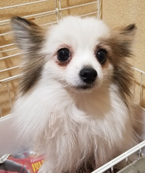 | 特徴(性格など) | 白×茶色のパピヨン×ポメラニアンのMixです。 体も少し小さめで性格は人が大好きで他のわんちゃんともトラブルなく生活出来ています。 トイレは只今トレーニング中ですが環境が変わる事もあり1からと思って頂ければ助かります。 |