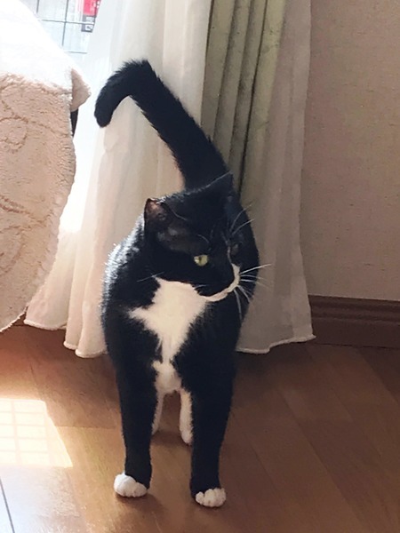| 特徴(性格など) | 艶々した黒猫さん、クルクル大きな瞳、仮面を被ったように口元の半分が白、半分が黒。くっきりL字型の珍しいしっぽ。何とも愛嬌のある可愛い姿です。 ナルちゃんは、外で暮らしていた頃、餌をくれるお婆さんにはとっても懐いていましたが、保護されてからはまだ撫ぜようとすると怖い顔でシャー!! いつになったら私に心を開いてくれるのかな・・という保護主の心配をよそに、高い所ではお腹を出してゴロンゴロンしながら、小さな声でひとり何かしゃべっています。ご機嫌なんでしょうねえ・・・ こんなナルちゃんですが、人に懐いていた猫は必ず他の人にもやがて懐きます。 可愛い姿を眺めながら懐くのを待ってくださる優しい飼い主さん募集中です。 エイズ白血病陰性 ノミダニ駆除 回虫駆虫済 |