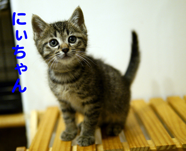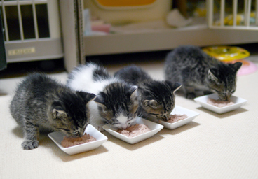 | 里親募集する理由 | とある施設裏の工事現場に遺棄された子猫達です。 たまたま見つけて下さった施設の職員有志の方達が、いろんな伝を頼って保護先を探してくれました。 尼崎の団体さんから伊丹の団体さんへ、そして大阪の猫の幼稚園へ保護要請が周り、現在に至ります。 猫の幼稚園では行政収容の猫達を中心に保護し、家猫修行の後、 終生飼育して下さるご家族の元へ送り出しています。 |