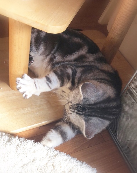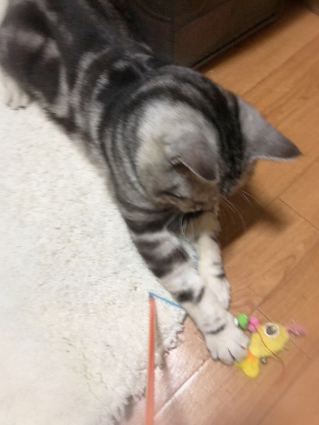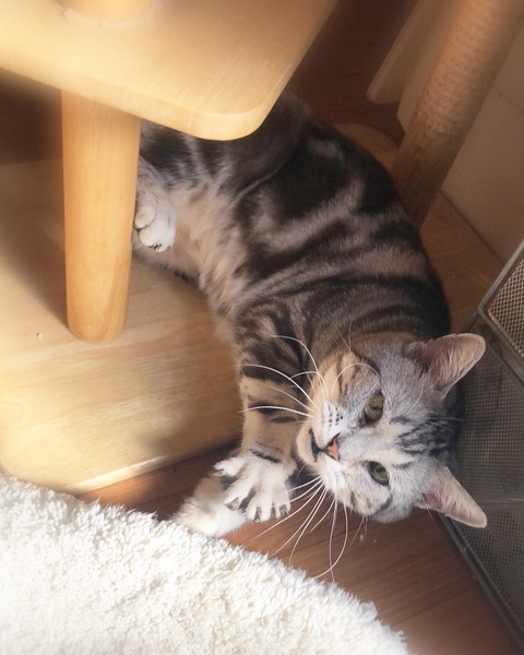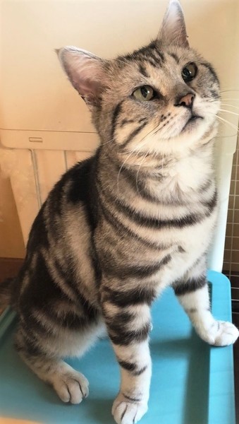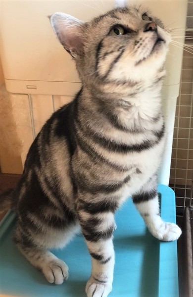 | 特徴(性格など) | 仮名、もっちー。 手足むくむく大きなアメリカショートヘア男の子。 慣れるまで少々緊張した様子でしたが、のんびりした性格をしています。 とても食いしん坊で、食べた後でも「まだ食べていませんが・・」と空のお皿の前に座りじっとこちらを見つめたりします。 おもちゃで遊ぶ事も大好きで、もちもち走り一生懸命追いかけます。 |