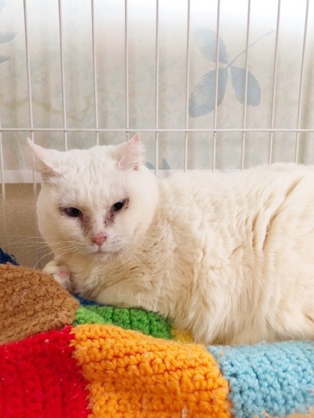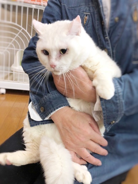 | 特徴(性格など) | 真っ白な女の子です。目が細くて、愛嬌ある顔立ちをしています。少し怖がりさんで、預りさんには心を許しています。慣れてくると甘えてきますが、人見知りな性格です。 もう3年近く、里親さんが、見つかりません。 単身者さま・シニア世代の方も大歓迎です。 どうか、ゆきちゃんに会いにきてください。 |