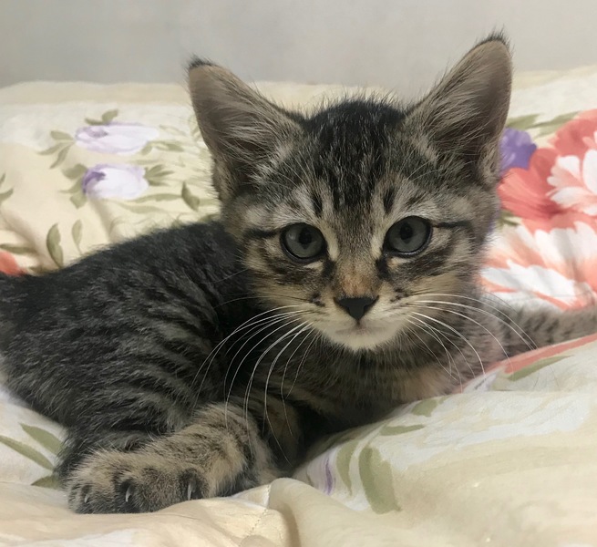 | 特徴(性格など) | 【猫の名前】ライくん オス(担当コガ) 【毛色・柄】キジトラ 尻尾長い ライ、ヒョウ、チータくんは男の子3兄弟です。 兄弟の中で唯一、眼にハンデがない子です。 わんぱくで遊び盛り、食欲も旺盛な元気な男の子です。 ヒョウくんとよく走って一緒に遊んでいます。 ペット可にお住いの方、まだ小さいためお留守番の短い方、又は兄弟一緒、先住猫がいるお宅が希望になります。 |
